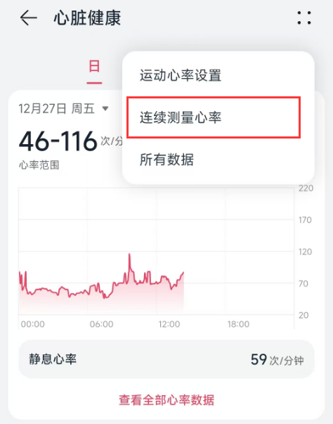 3、查看华为运动健康App中连续测量心率选项是否开启