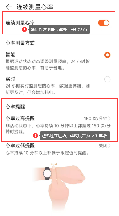 (温馨提示:心率过高提醒建议设置为180-年龄)