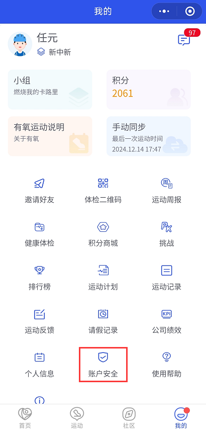 2)在心有氧-我的-账户安全,撤销华为授权,使用华为运动健康App登录帐号一致的手机号重新授权。
