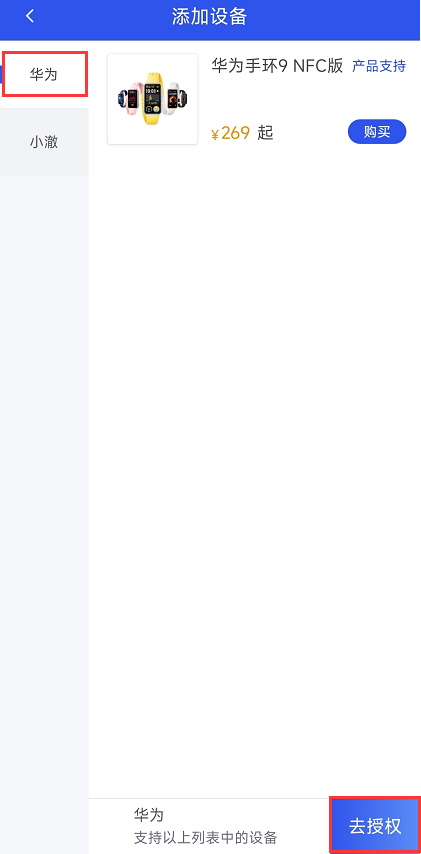 首页-【添加设备】-【添加设备】-华为-【去授权】重新授权华为运动健康数据。