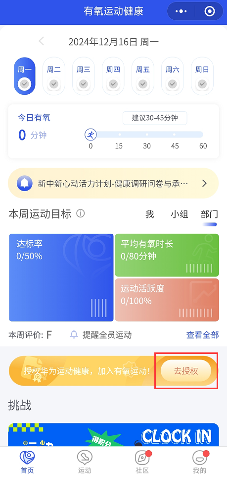 心有氧小程序用户:首页下拉刷新,点击【去授权】重新授权华为运动健康数据。